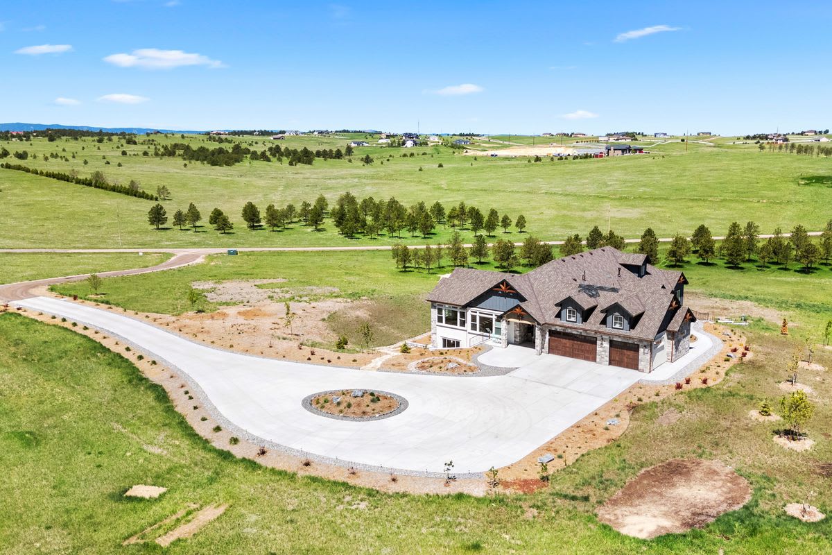 Rare and unique high-value investment property available for a perspicacious buyer seeking privacy and tranquility on a 35+ acre ranch property perfectly suited to enjoy the best Colorado has to offer in close proximity to Denver and Colorado Springs. Close to the prestigious community of Flying Horse North. The sale includes valuable ground water rights that allow subdivision of 7 parcels with El Paso County approval, The vacant lots could be sold at roughly $300,000 per parcel would equate to roughly $1,800,000 in lot sales. Tremendous Pikes Peak and full mountain range views in award winning School District 38! Mere minutes from the 18 hole golf course designed by renowned golf course architect Phil Smith. Flying Horse North has plans for 5 star resort with all of the best amenities at your fingertips. Meticulously crafted 8,800 square foot custom ranch style home with awe-inspiring Pikes Peak views perfectly perched on a knoll. 7 bedrooms, 2 offices, 5 bathrooms, circular concrete driveway with tons of parking space, 3 car garage. Soaring vaulted ceilings, wide planked oak floors, 3 gas fireplaces. Gourmet kitchen w/ high end cabinetry, Quartz counters, two islands, two sinks, two dishwashers, 6 burner gas cook-top, pot filler, double oven and butlers pantry off of kitchen. Amazing outdoor entertaining spaces with composite deck, abundance of concrete patios off of the master bedroom and walk-out lower level. Main level primary suite w/ walk-out to the back patio, walk-in closet, 5 piece bath, gas fireplace, over-sized shower. Separate lower level apartment with kitchen, living room, two bedrooms and a bath. Theater room with 4k high definition projector, a receiver, 9.2 surround speaker system with 30 speakers, 60 degree security cameras, under eave lighting. Walk-out lower level w/ large family room and wet bar. Zoned for horses, other animals, RV's and outbuildings are allowed. 50 minutes to Denver and 15 minutes to Northgate.